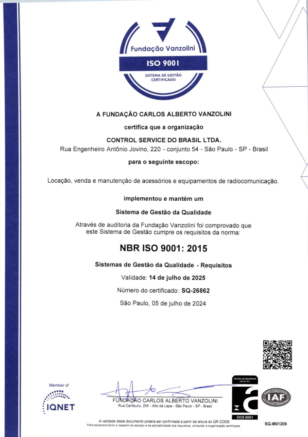Entre em contato conoscoFornecer produtos e serviços de radiocomunicação, que agregue valor ao negócio dos nossos Clientes, visando a sua plena satisfação, por meio da melhoria contínua do sistema de gestão da qualidade e valorização do capital humano de forma a assegurar o crescimento da Control Service e atendimento aos requisitos legais e outros aplicáveis.